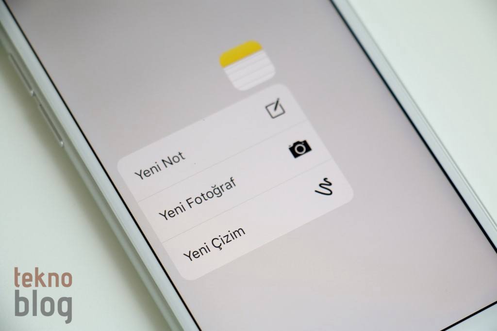 Örneğin Kamera uygulamasının ikonuna bastırdığınızda açılan menüde selfie çek, video kaydı yap, ağır çekim kayıt yap ve fotoğraf çek seçenekleri bulunuyor. Bunlardan birisini seçtiğinizde doğrudan kamera uygulamasının ilgili arayüzüne gidiyorsunuz. Notlar uygulamasının ikonuna bastırdığınızda ise yeni not, yeni fotoğraf ve yeni çizim seçenekleri karşınıza geliyor. Safari’nin kısayolunda ise Okuma Listesi’ni Göster, yer imlerini göster, yeni özel sekme ve yeni sekme gibi hızlı aksiyon seçenekleri bulunuyor.