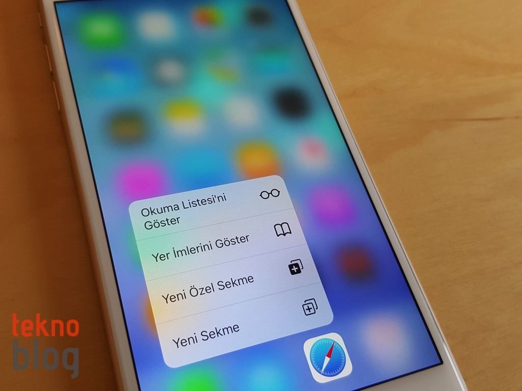 iPhone 6s Plus’ı açınca yaptığımız ilk işlerden biri ana ekrandaki Kamera, Takvim, Mesajlar, Safari gibi Apple’ın yerleşik uygulamalarının ikonlarına bastırmak ve aksiyon menüsünü açmak oldu. Ancak bunu yaparken basmayı beceremeyip menüleri açmak yerine uygulamaları silmeyi sağlayan, uygulama ikonlarının sağa sola sallanıp durduğu arayüzü birkaç kez istemeden açtık. Diyeceğimiz o ki, iPhone 6s ve 6s Plus sahiplerinin 3D Touch’a alışmaları az da olsa zaman alabilir. iPhone 6s ve 6s Plus’a eklenmiş olan Haptic Engine sayesine 3D Touch hareketlerinde geri bildirimleri titreşim şeklinde elde hissetmek güzel oluyor. Örneğin ana ekrandaki herhangi bir uygulama ikonuna bastığınızda, menü açıldığında ve açılmadığında farklı titreşimler üretiliyor, böylelikle olumlu ve olumsuz durumu sadece gözle görmek değil, avuç içinde de hissetmek mümkün oluyor.
