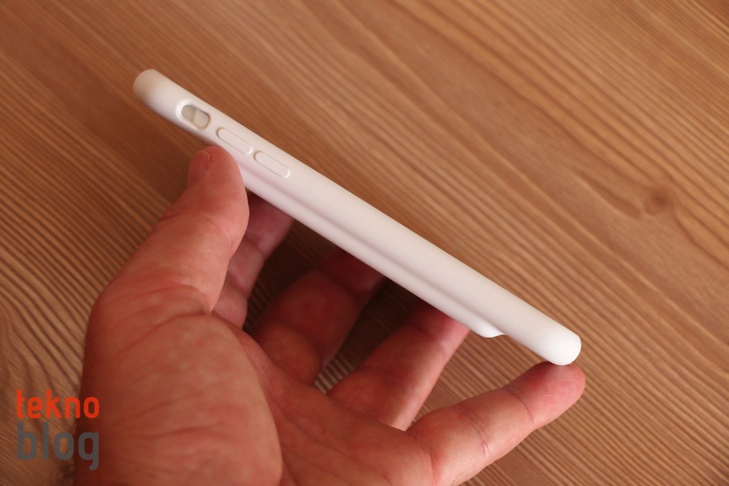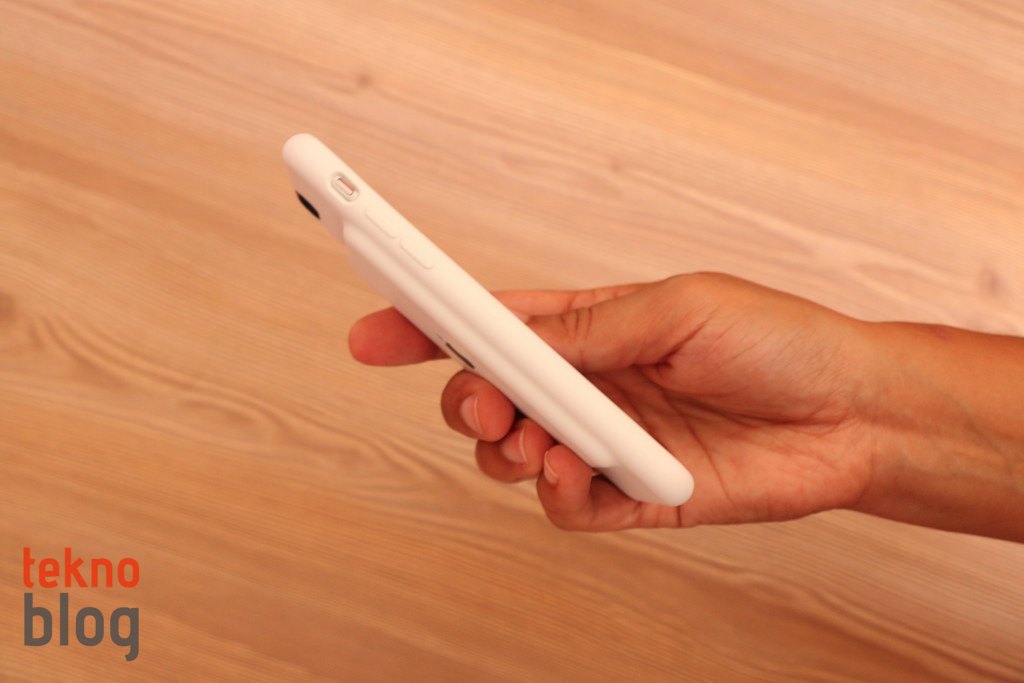 Apple, geçen yılın sonlarına doğru, iPhone 6s ve 6 modelleri için özel bir aksesuar çıkardı. iPhone 6s Smart Battery Case olarak adlandırılan bu aksesuar, sahip olduğu ek pil sayesinde Apple’ın 4.7 inç ekranlı iPhone’larına ek pil kapasitesi sağlıyor. Apple’ın iPhone 6s ve 6 modellerine özel silikon kılıflara görünüm açısından çok benzeyen ve aslında aynı malzemeden üretilen Smart Battery Case’in siyah ve beyaz olmak üzere iki temel rengi bulunuyor. İçi süet benzeri yumuşak bir dokuyla kaplıyken dışı da yumuşak ve hafif sürtünmeli bir yüzeye sahip. Sonuç olarak iPhone 6s’in korunaklı bir şekilde kalmasını sağlıyor. Öyle ki, telefonu Smart Battery Case takılı hâldeyken yaklaşık 80 cm. yükseklikteki masadan düşürdüğümde ne kılıfa ne de telefona bir zarar geldi.