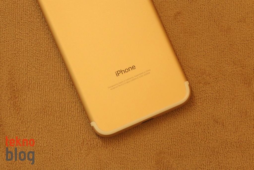 Altın renk daha önceki iPhone 6 ve 6s modellerinde de olduğu için, farklı bir iPhone kullandığınız hissini ilk başta yaşatmayacaktır. Arka yüzde, anten çizgilerinin yeniden tasarlanması, eski modellerde enine kesen çizgilerin sınırlara alınması altın renkli modelin görünümüne olumlu katkıda bulunmuş. iPhone 6 ve 6s’te arka yüz pek de şık görünmüyordu, beyaz çizgiler estetik durmuyordu. Yeni nesil iPhone’da ise anten çizgileri daha şık, cihazın güzelliğini bozmuyor. Arkada yer alan iPhone yazısı da, Apple’ın San Francisco yazı tipindeki görünümüyle farklılığı gösteriyor.
