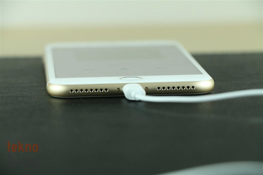 iPhone 7 Plus’ın en yeni iPhone modeli olduğunu gösterecek bir başka önemli ayrıntı da alt kenarda bulunuyor. Apple’ın yeni telefonları tanıtılmadan önce, birkaç ay boyunca 3.5 mm. kulaklık jakının kaldırılacağı şeklinde dedikodular ortalıkta dolaşmıştı. Bu dedikoduların gerçeğe dönüştüğünü gördük. Yeni telefonlarda 3.5 mm. kulaklık jakının yerinde ikinci bir ızgara yer alıyor. Ne var ki, bu ızgara sanıldığı gibi hoparlör işlevine sahip değil. Apple bu ızgarayı daha çok kozmetik amaçla ve aynı zamanda suya dayanıklılığı güçlendirmek için yerleştirmiş. Kulaklık jakı kalkınca, kulaklık bağlantısı da doğal olarak alt kenardaki Lightning portu üzerinden sağlanıyor.