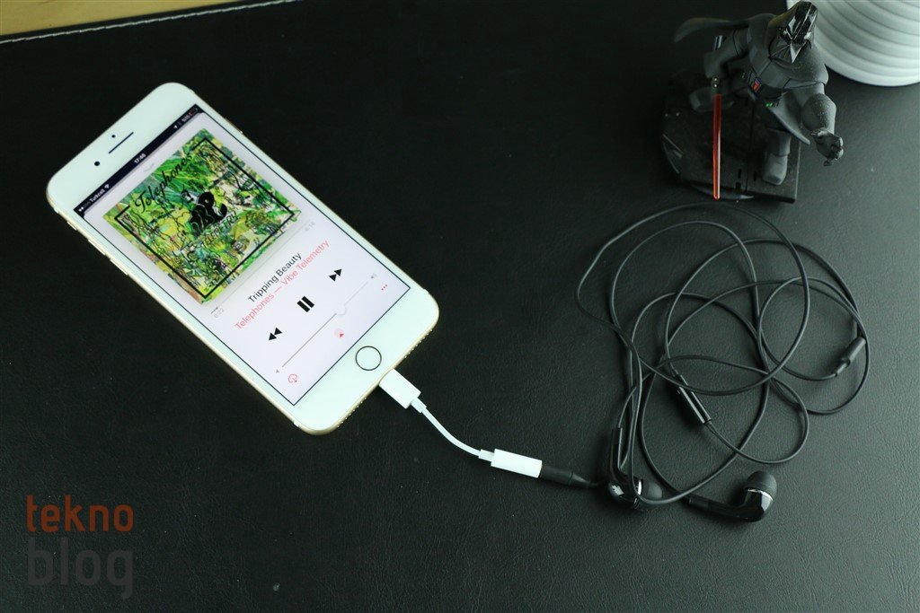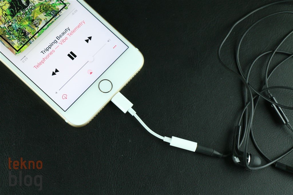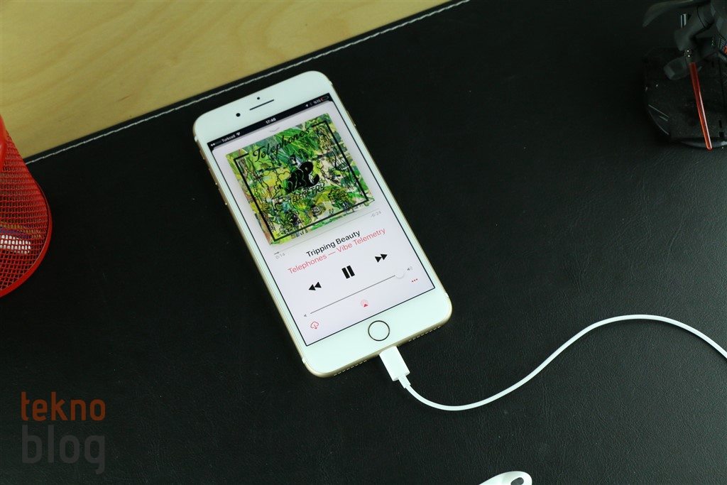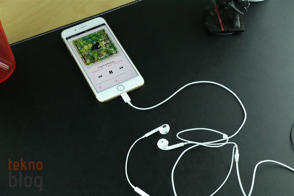 Artık çoğunuz biliyorsunuzdur; iPhone 7 Plus’ın kutusundan Lightning uçlu Earpods kulaklıklar çıkıyor. Alıştığımız 3.5 mm. uçlu Apple kulaklıkları aynı şekilde korunuyor, sadece ucu değiştirilmiş. Bu arada Apple, kutuya bir de 3.5 mm. – Lightning dönüştürücü adaptör yerleştirmiş. Bu sayede klasik uçlu kulaklıklarınızı da iPhone 7 Plus ile kullanabilirsiniz. Kulaklık adaptörü 3.5 mm. uçlu Earpods kulaklıklarla uyum sağlıyor. Ancak HTC One M7, M8 gibi telefonlarla gelen ya da General Mobile GM 5 Plus’ın kulaklığını kullanmak istediğimizde, adaptörün 3.5 mm. girişi küçük kaçtı. Bu durum temasın en iyi şekilde sağlanmamasına ve seste bozulmalara neden oldu. Yani, kutudan çıkan adaptör her kulaklıkla yüzde 100 uyum taşımayabiliyor. Bunun yanı sıra küçük boyutu ve hafifliği nedeniyle kaybetme tehlikesi de oldukça yüksek. En iyisi sık kullandığınız 3.5 mm. klasik uçlu bir kulaklığın ucuna bu adaptörü takmak ve çoğu durumda bu şekilde bırakmak.