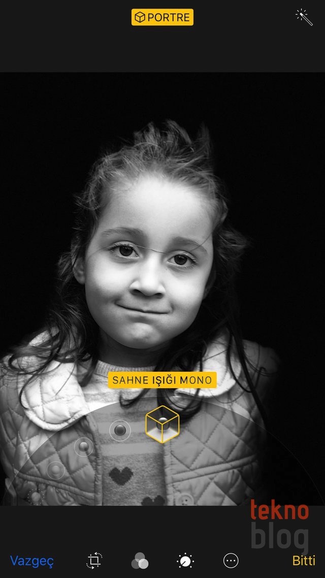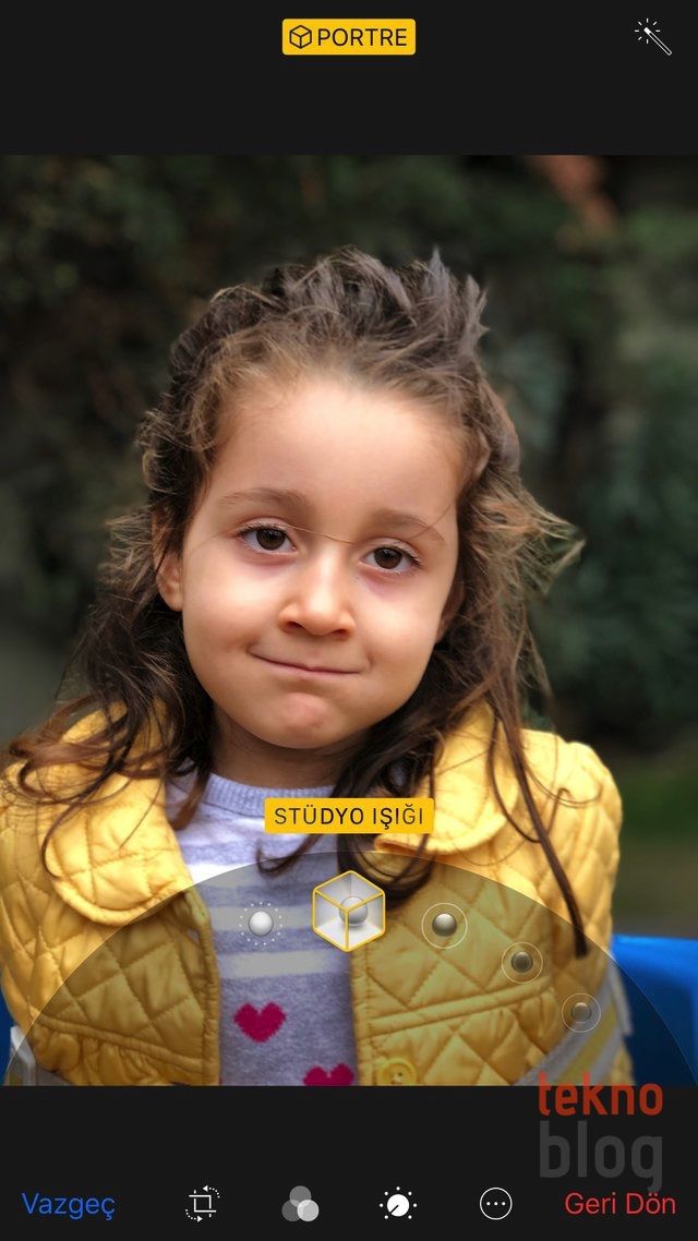 Portre Işığı efektlerini çekim öncesinde uygulayabileceğiniz gibi, çekim sonrasında da uygulayabilirsiniz. Bunun için çektiğiniz Portre fotoğrafı düzenlemek için açın, ekranın alt kısmında farklı ışık efektlerini göreceksiniz. Bunların arasında seçim yapabilirsiniz. Orijinal görüntü de kaydedildiği için istediğiniz zaman eski ayarlara dönebilirsiniz.