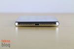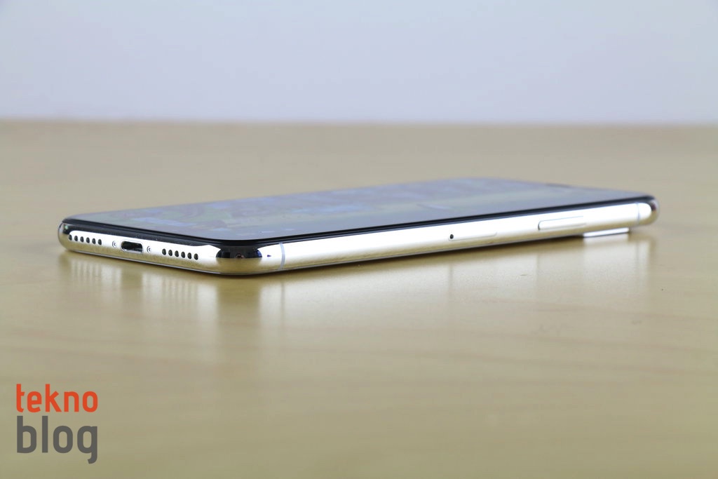 Kenarlardaki yerleşim iPhone 8 ve 8 Plus’takiyle aynı. Alt kenarda Lightning portu, hoparlör ve mikrofon bulunuyor. Üstte herhangi bir giriş veya çıkış yok. Sol kenarda ses tuşları ve ses kapatma düğmesi bulunuyor. Sağ kenarda yan tuş olarak adlandırılan ve uzunca basıldığında Siri’yi etkinleştirmeye yarayan bir tuş var. Bu tuş, iPhone 8 veya 8 Plus’takine göre daha uzun biçimde tasarlanmış. Böylelikle daha rahat şekilde kullanılıyor. Daha alta doğru ilerlediğimizde de nanoSIM kart tepsisini görüyoruz.
