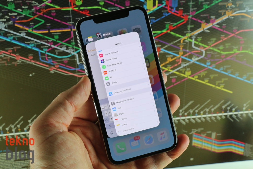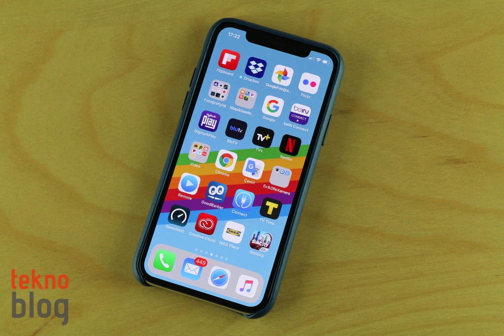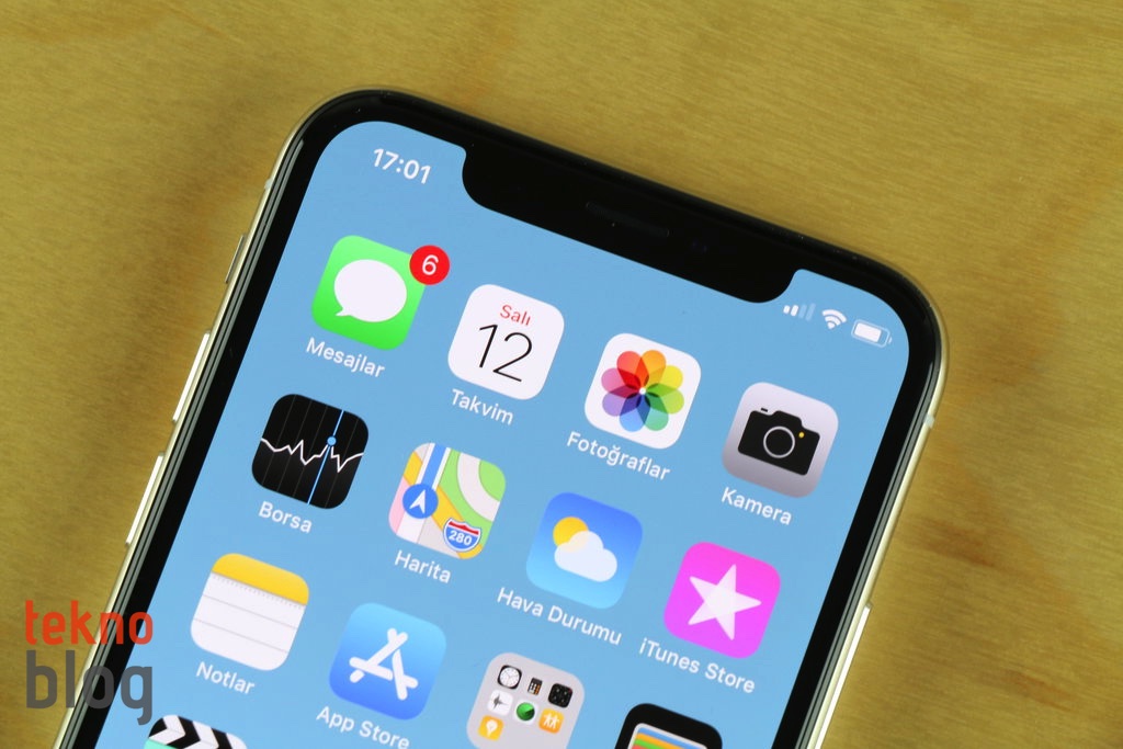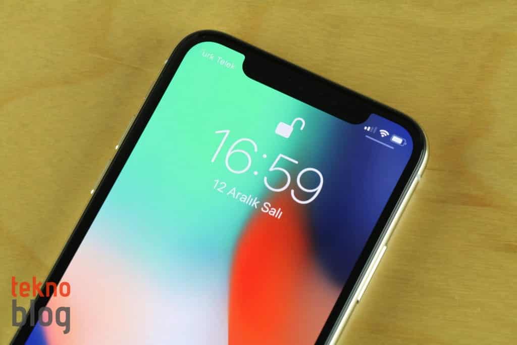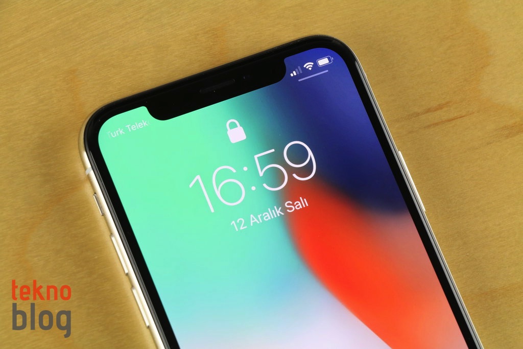Ekran biçiminin değişmesiyle birlikte, diğer iPhone’larda ekranın üst bölümünde gördüğümüz; pil, şebeke sinyal seviyesi, saat ve diğer bilgileri gösteren durum çubuğu da değişim geçiriyor. Apple, durum çubuğunu ikiye bölerek çentiğin iki tarafına dağıtmış. O alanları çok fazla doldurmamak, yoğun göstermemek için de sadece saat, şebeke sinyal durumu; Wi-Fi, LTE, 3G bağlantı göstergesi ve pil simgesini gösteriyor. Daha fazlasını görmek, örneğin pil doluluk yüzdesini öğrenmek için parmağınız çentiğin sağında kalan bölümden aşağı sürükleyerek Denetim Merkezini açmanız gerekiyor.