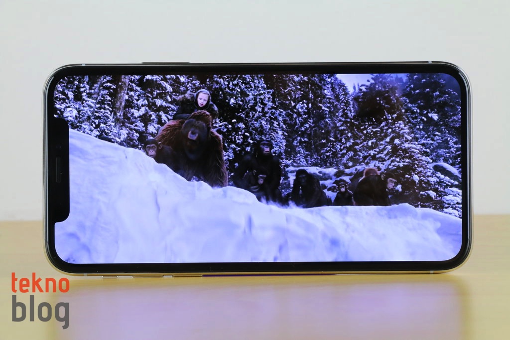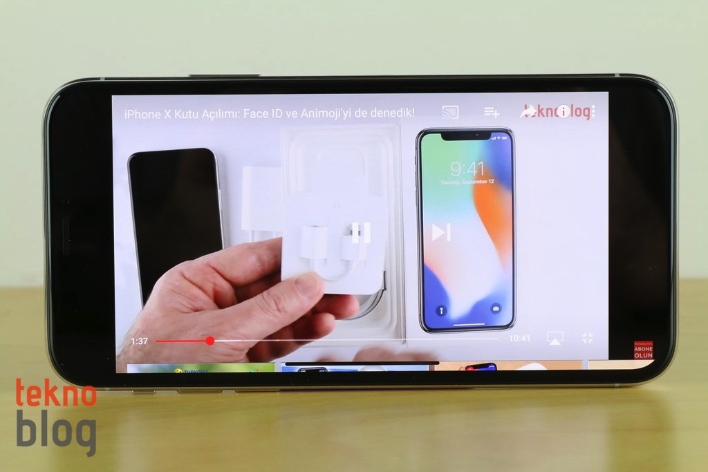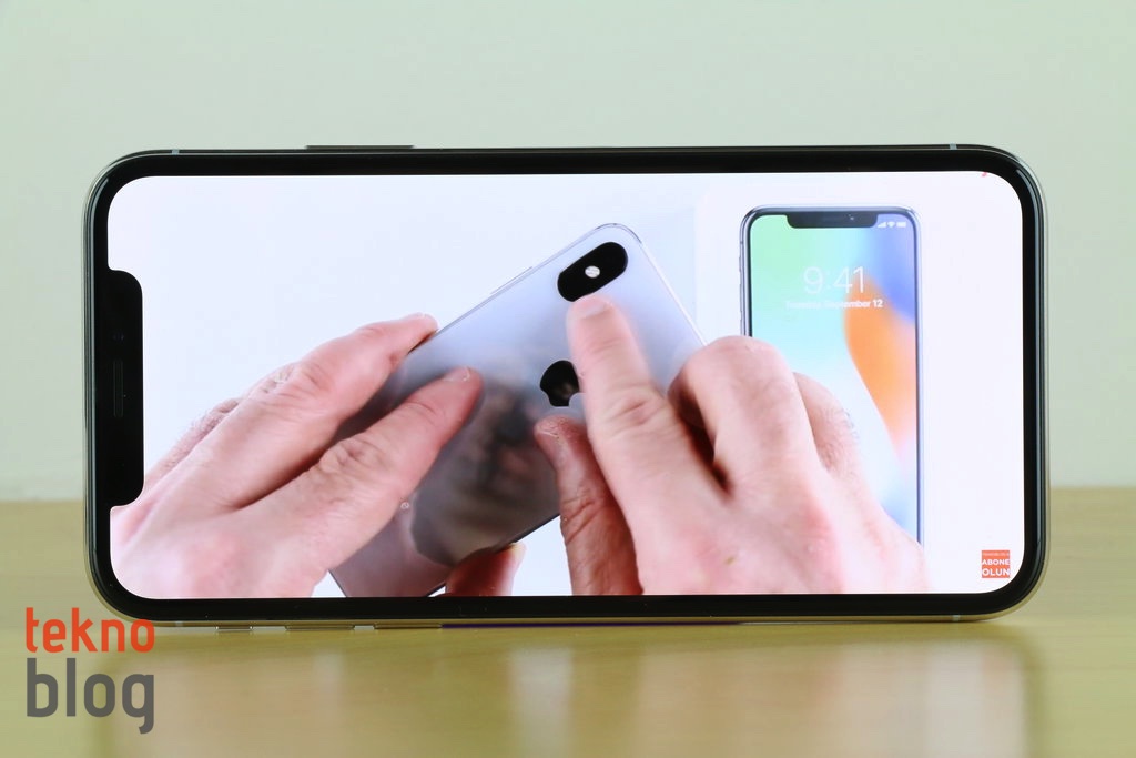 Video tarafında uyumluluk konusunda bazı hususların varlığı söz konusu. Videolar genellikle 16:9 formatında üretiliyor ve yayınlanıyor. Bu nedenle iPhone X’un ekranında video izlediğinizde, her iki kenarda da siyah renkli alanlar göreceksiniz. YouTube uygulamasında 16:9 videoları yakınlaştırarak ekrana tam olarak oturtmak mümkün, ancak bu durumda içerikten kayıp oluyor. Netflix ise biraz daha iyi bir çözüm bulmuş, çentiğin başladığı çizgiyi sınır kabul ederek videoyu buna göre ölçeklemiş. Sonuç olarak hem iPhone X’un daha büyük boyutlu ekranından yararlanan hem de çentikten etkilenmeyen bir görsel deneyim elde ediliyor. iTunes’dan satın alınan veya kiralanan filmlerde yakınlaştırma yapılarak video ekrana tamamen oturtulabiliyor. Filmler genellikle 21:9 formatında çekildiği için, iPhone X’un ekranına oturması daha rahat oluyor, kayıp alan miktarı nispeten düşüyor.
