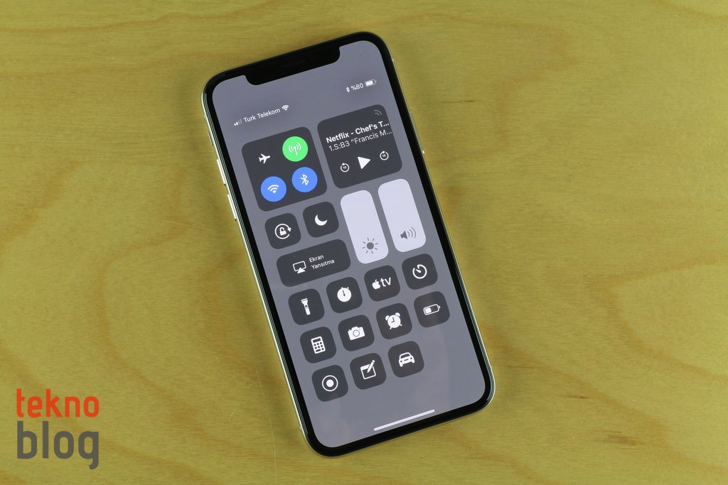 Denetim Merkezi de iPhone X ile birlikte değişim geçiren unsurlardan bir tanesi. Aslında çok büyük değişiklik yok, ancak yukarıda sözünü ettiğimiz ek durum bilgileri Denetim Merkezinin üst kısmında gösteriliyor. Denetim Merkezinin gösterimi üstten başladığı için, ikonların yerleşiminde referans da üst taraf oluyor.