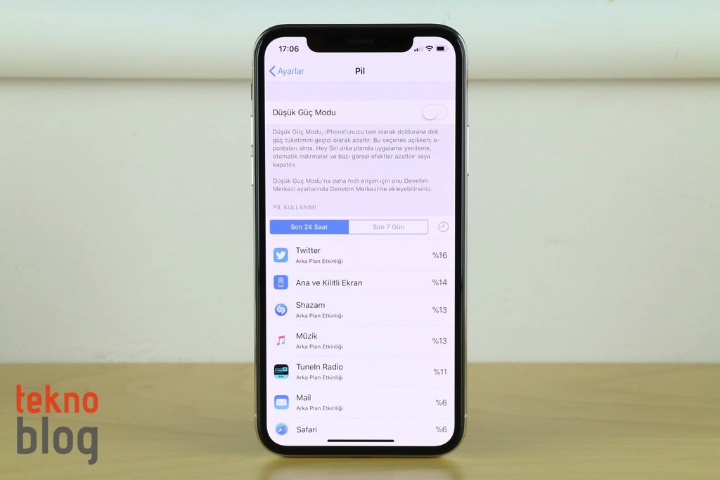 Pil tarafına gelecek olursak, her ne kadar Apple açık şekilde belirtmese de, iPhone X’da 2716 mAh kapasiteli bir pil bulunuyor. Pil kapasitesi iPhone 8 Plus’takinden (2691 mAh) biraz daha yüksek olmakla birlikte, hemen hemen aynı seviyede bulunuyor. Bu pilin bir günü rahatlıkla çıkaracak bir performans sunduğu söyleniyor ki, pratikteki izlenimlerimiz de bunu doğru çıkaracak nitelikte görünüyor. Sabah iPhone X’u yüzde 100 dolu pille kullanmaya başladığınızda, eğer akşama kadar çok yoğun şekilde video izleme veya oyun oynama gibi, hem ekranı açık tutacak hem de işlemciyi yoracak işlere girişmezseniz, akşam yatağa girinceye kadar iPhone X sizi tek şarj ile idare etmeyi başaracaktır.