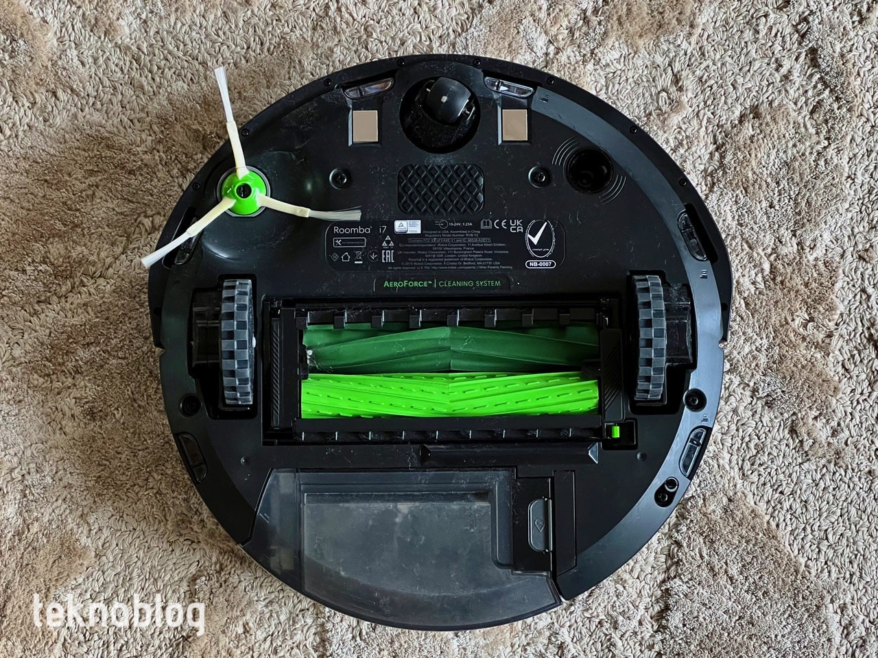 Roomba i7, iRobot’un diğer Roomba robot süpürgeleri gibi çift kauçuk fırça, kenar süpürme fırçası ve yüksek emiş gücünden oluşan patentli 3 Aşamalı Temizleme Sistemi ile geliyor. Bu sayede sert zeminde ve özellikle halılarda üstün performans gösterdiği belirtiyor. Birbirine zıt yönde hareket eden patentli çift kauçuk fırça sistemi, rakiplerine nazaran Roomba’nın çekim performansını çok daha güçlü kıldığı da söyleniyor. Rakiplerindeki kıl fırçaların aksine kauçuk fırçalar, saç ve tüy gibi atıkları etrafına dolamadan direkt olarak toz haznesine aktarıyor. Sonuç olarak, güçlü bir çekim performansı sergiliyor. Gözle gördüğümüz çoğu tozu veya zerreciği tek seferde aldığına tanık olduk. Ayrıca robotun altını çevirip baktığımızda, belirtildiği gibi temizlememiz gereken saç kıllarına pek rastlamadık. Toz haznesindeki tozları boşalttıktan ve filtreyi çıkardıktan sonra, hazneyi ılık su ile yıkayabilir ardından kendi kendine kuruması için bir yere bırakabilirsiniz.