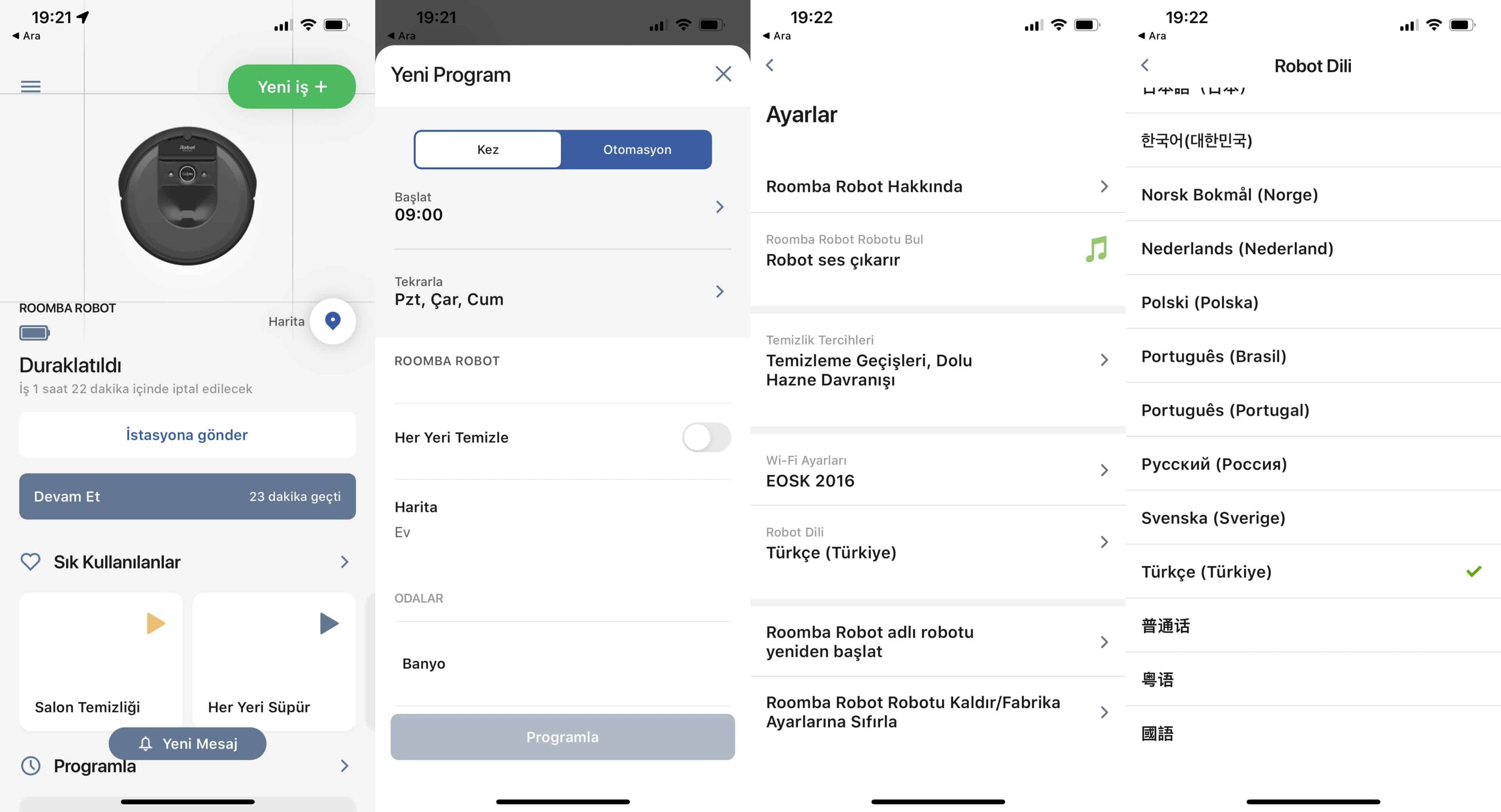 Artık Türkçe dil seçeneği bulunan iRobot Home uygulaması üzerinden temizliği başlatabilir, tüm evin süpürme işlemi bittiğinde evinizin haritası ile birlikte işlemin tamamlandığına dair rapor alabilirsiniz. Kendinize haftalık temizlik rutini oluşturabilir, robot süpürgenizi dilediğiniz gün ve saatlerde çalışmak üzere programlayabilirsiniz. Hatta evinizin farklı bölümleri için farklı temizlik rutinleri oluşturmanız mümkün. Üstelik iRobot Home uygulaması, mevsim geçişleri ve alerji dönemlerinde temizlik önerileri de sunuyor.