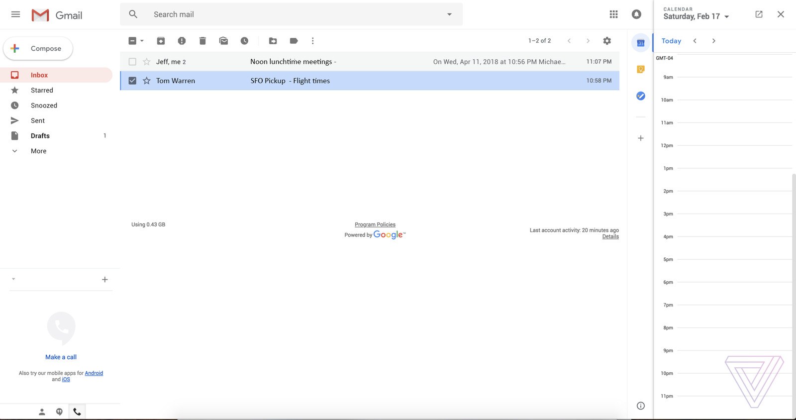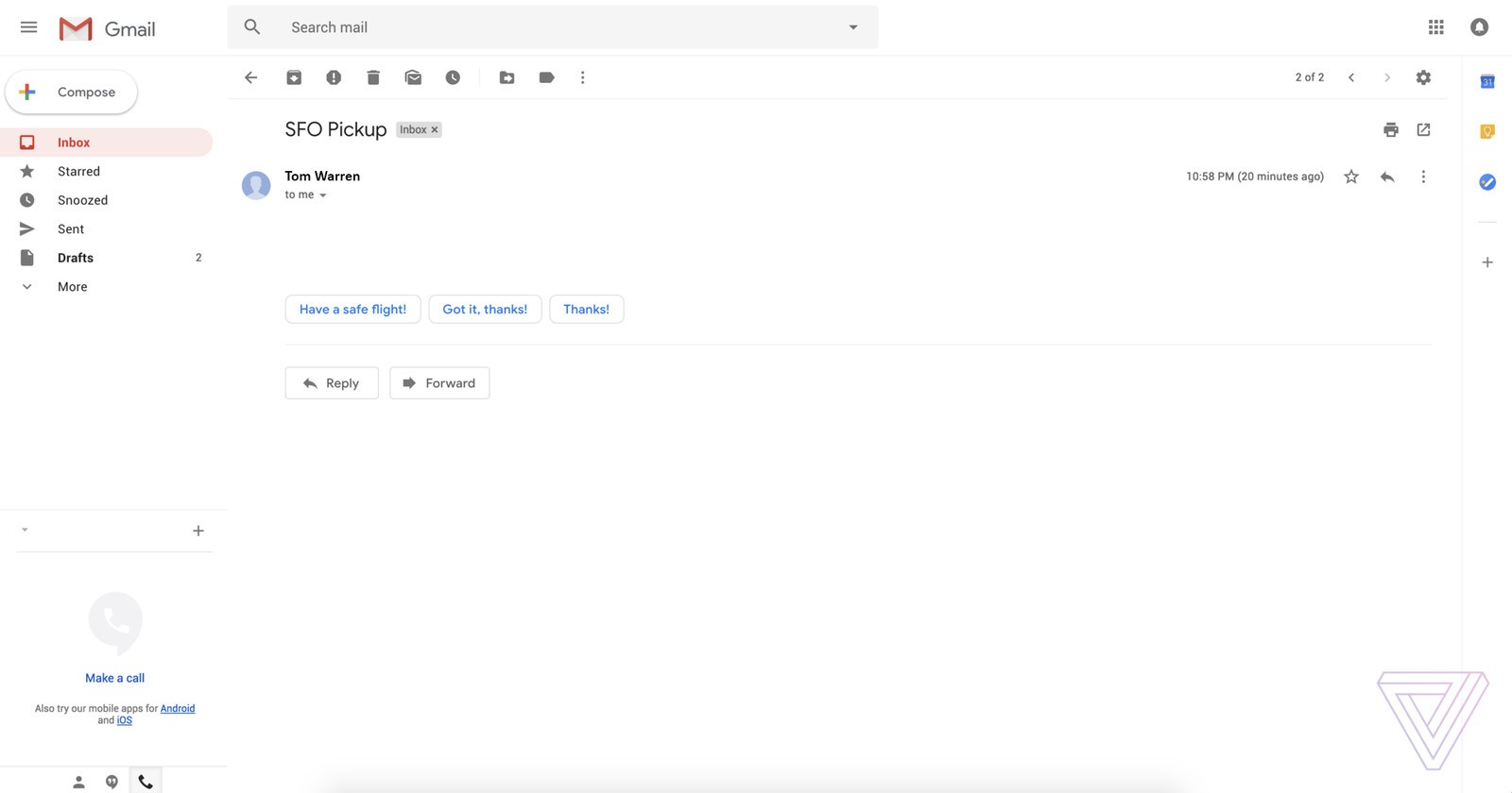 Yenilenen Gmail tasarımında yeni bir kenar çubuğu da dikkat çekiyor. Burada Google’ın Takvim, Keep not tutma uygulaması veya görevleri e-posta iletileriyle yan yana görüntülemek mümkün oluyor. Bu, belki de yeni tasarımın en kullanışlı yanı olabilir. Böylelikle bir buluşma veya toplantı ayarlarken bir yandan da e-posta iletisine cevap vermek kolaylaşacaktır.