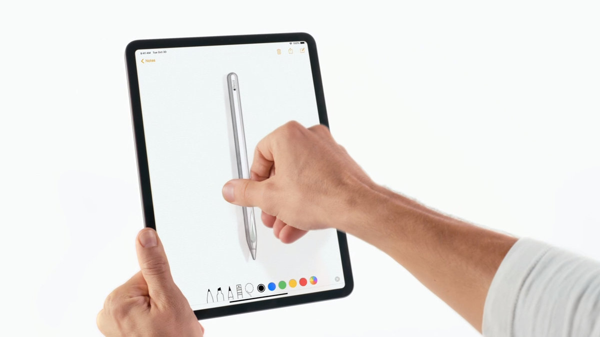 Öte yandan Apple, iPad Pro ile birlikte kullanılan Apple Pencil kalemi de yeniledi. Apple Pencil’ı Lightning portu üzerinden iPad’e doğrudan bağlama zorunluluğu ortadan kalkıyor. Şimdi Apple Pencil’ı iPad Pro’ya manyetik kuvvet yardımıyla tutturmak ve bu sırada kablosuz olarak şarj etmek mümkün oluyor. iPad Pro’ya Apple Pencil ile tıklattığınızda cihaz anında uyanıyor ve Notlar açılıyor. Ayrıca diğer dokunmatik hareketler arasında üretkenlik uygulamaları içinde araçlar arasında değiştirme yapma ve diğer işlevleri gerçekleştirme de bulunuyor. Bu hareketler üçüncü taraf geliştiricilere de açılıyor.