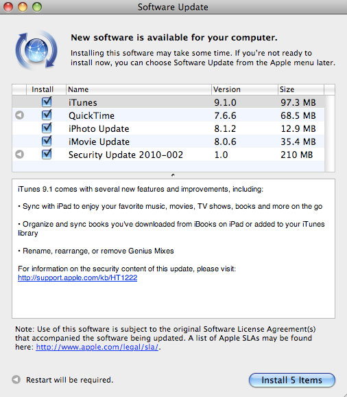 Yeni iTunes sürümünün en önemli özelliği iPad ile senkronizasyon özelliğine sahip olması. Her ne kadar bizim için bir anlam ifade etmese de iPad ile iBookstore’dan indirilen e-kitaplar veya iTunes üzerinden satın alınıp bilgisayara indirilen e-kitaplar düzenlenebiliyor ve bilgisayar ile iPad arasında e-kitap senkronizasyonu yapılabiliyor. Yeni versiyon kullanıcılara Genius Mix’lerini yeniden adlandırma, yeniden düzenleme ya da silme imkanı da veriyor. Yeni versiyonda “Applications” bölümünün sadece “Apps” olarak adlandırıldığı ve Genius Mix, iPhone ve iPod touch senkronizasyon sayfalarının da yeniden düzenlendiği gelen habelerler arasına. iTunes 9.1 yazılımının kurulum dosyası yaklaşık 97.3 MB’lık büyüklüğe sahip. Yazılım Güncelleme aracını kullanarak ya da Apple’ın iTunes sayfasına giderek yeni sürümü bilgisayarınıza kurabilirsiniz.