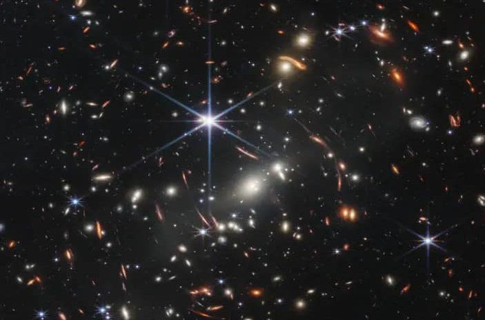 Paylaşılan James Webb Uzay Teleskobu görüntüsü, galaksi kümesi SMACS 0723’ü gösteriyor ve bugüne kadar uzak evrenin en derin kızılötesi görüntüsü olma özelliğini taşıyor. Kümeyi 4,6 milyar yıl önce olduğu gibi gösteriyor. Kümenin kütlesi çok büyük olduğu için uzay-zamanı büküyor ve arkasındaki daha uzak galaksileri görmemizi sağlıyor. Çok uzakta oldukları için ışık çok zayıf ve bu binlerce galaksi, kızılötesinde şimdiye kadar gözlemlenen en sönük nesneler arasında bulunuyor. Bu ayrıntı düzeyi Webb’in NIRCam cihazı sayesinde yakalandı ve bunun için 12,5 saatten fazla süren bir gözlem bileşimi gerçekleştirildi.