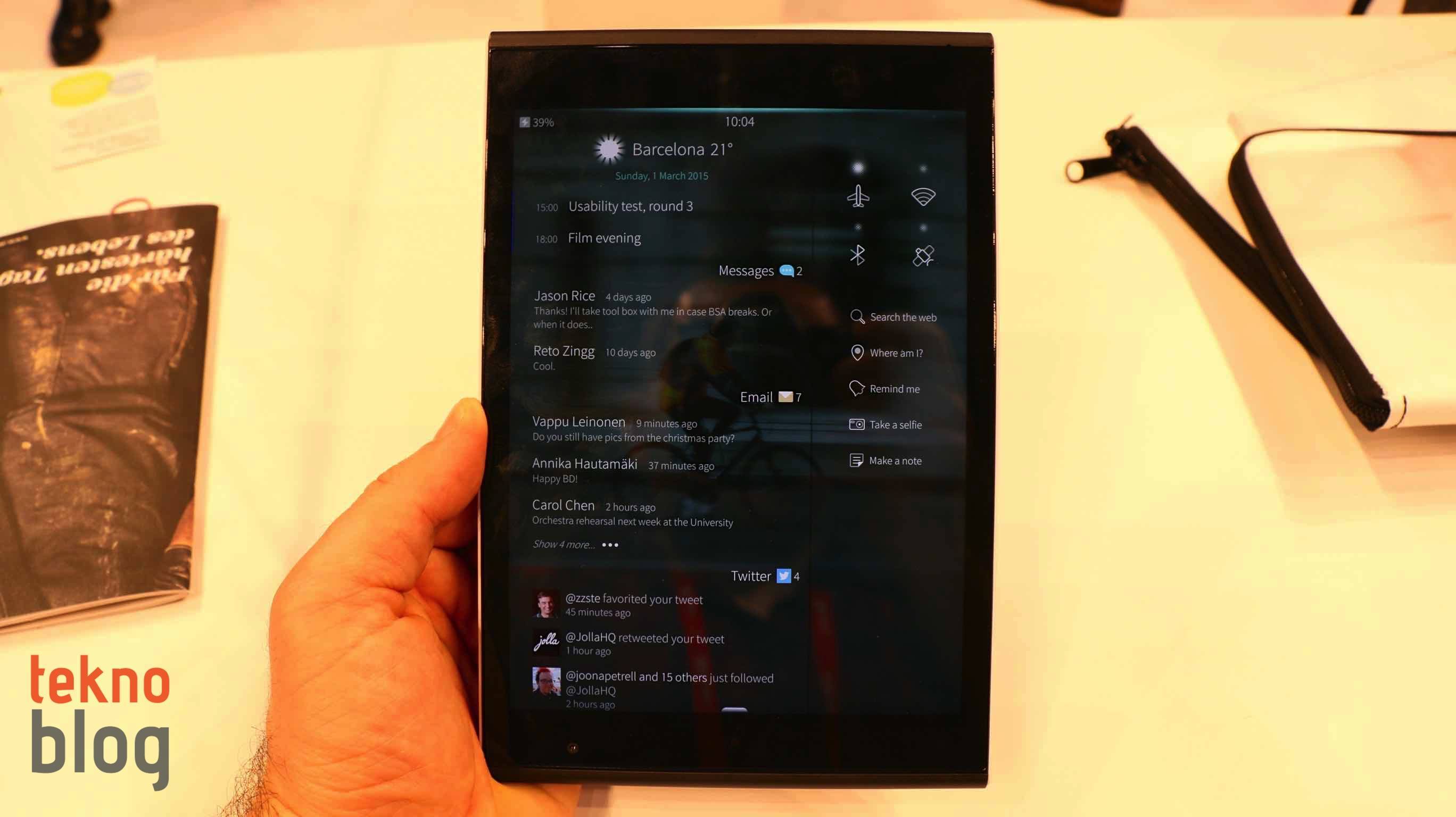 Mobil Dünya Kongresi’nde Jolla standını boş geçmedik ve haberlerini sıklıkla aktardığımız Jolla Tablet’i bizzat deneyimleme fırsatı elde ettik. 7.85 inç, 2048 x 1536 piksel çözünürlüklü ekran, Intel Atom işlemci, 2 GB RAM, 32 veya 64 GB dahili depolama seçenekleri, microSD kart yuvası, 5 megapiksel arka kamera ve 2 megapiksel ön kamera barındıran Jolla Tablet’in plastik gövdesi oldukça ergonomik, rahat şekilde tutuluyor ve kullanılıyor.