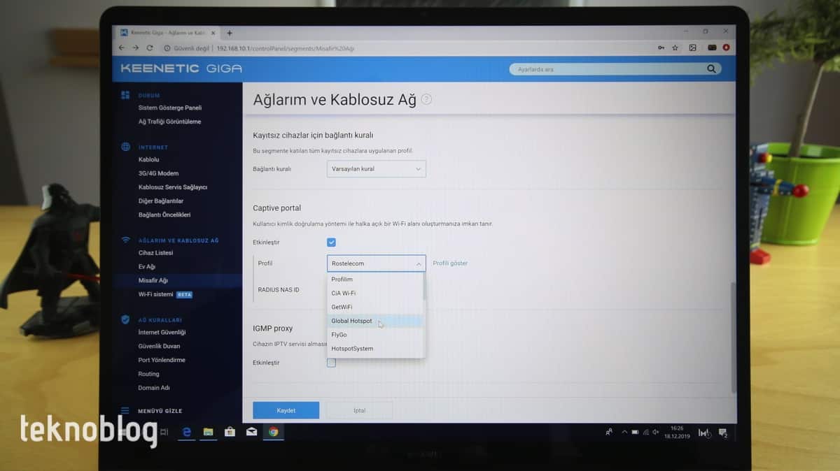 Kablosuz ağ demişken, Keenetic Giga’da da Misafir Ağı özelliği mevcut. Üstelik Captive Portal özelliği sayesinde kablosuz ağ erişimi sunarken ek bir kimlik doğrulama katmanı getirebilir, böylelikle misafir ağından yararlananların takibini daha iyi şekilde yapabilirsiniz. Bu, özellikle Keenetic Giga’yı kullanan kafe, restoran, hastane gibi işletmeler için bir hayli kullanışlı olacaktır. Ön tanımlı çeşitli ayarlar da Captive Portal hizmetinin kurulumunu kolaylaştırıyor.