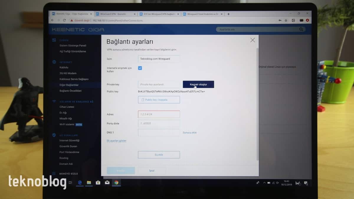 Keenetic Giga’da bulunan bir başka dikkat çekici özellik de Wireguard VPN bileşeni. Wireguard VPN bileşeni sayesinde Keenetic Giga’nın kalbinde bulunduğu ağa uzaktan, güvenli biçimde erişebilirsiniz. Wireguard VPN bileşenini kurmak için Keenetic Giga’da yüklü olan Keenetic OS’in 3.3 numaralı versiyonu gerekiyor. Şu anda beta aşamasındaki bu sürümü güncelleme bölümü üzerinden hemen kullanmaya başlayabilirsiniz. Daha sonra yönetim ayarları altındaki bileşen ekleme bölümünden Wireguard VPN bileşenini ekleyip kurulum işlemlerini başlatabilirsiniz. Wireguard VPN bileşeninin kurulumunu tamamladıktan sonra iPhone, Android telefon, Windows PC gibi cihazlarda da gerekli Wireguard ayarlarını tamamlayarak bağlantıyı dilediğiniz yerde sağlayabilirsiniz.