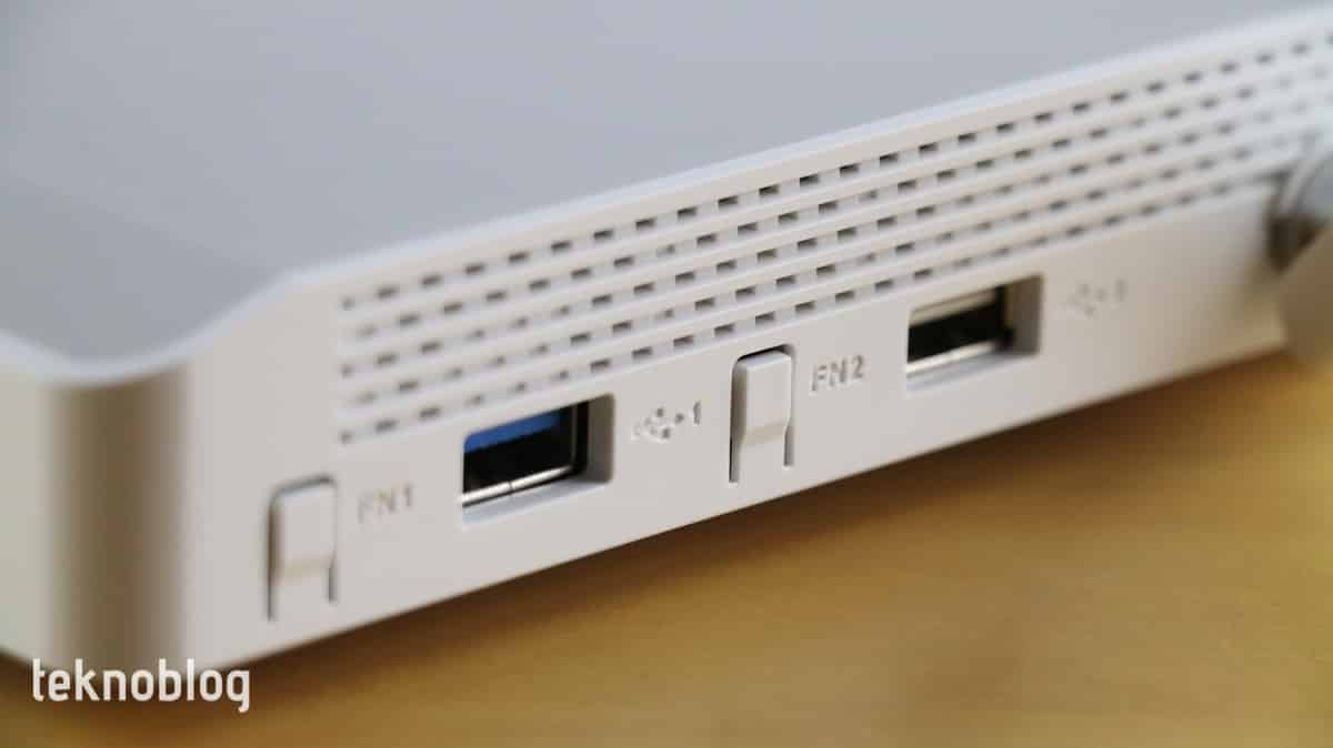 Keenetic Giga, sahip olduğu donanım bileşenleri bakımından da güçlü. Böylelikle saydığımız gelişmiş teknolojileri en iyi şekilde destekliyor. 880 MHz hızında çalışan çift çekirdekli MT7621A işlemci, 256 MB RAM, 128 MB flaş bellek mevcut. Cihazın tasarımı daha önce deneyimlediğimiz Keenetic cihazlarınınkine benziyor. Sahip olduğu portlar ve antenler de dikkate alındığında, Keenetic Ultra ile çok yakın bir görünüme sahip olduğunu söyleyebiliriz. Cihazın sağ kenarında biri USB 3.0, diğeri USB 2.0 destekli olmak üzere iki tane A tipi USB portu var. Ön tarafta ise gösterge ışıklarının dışında bir adet kablosuz bağlantı amaçlı fonksiyon tuşu mevcut. Ayrıca her bir USB portunu yanında birer fonksiyon tuşu var. Bunların işlevlerini web arayüzünden ayarlayabilirsiniz.