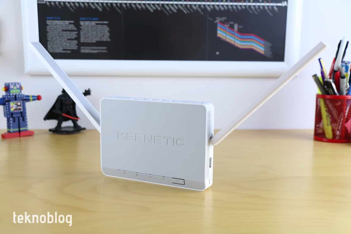 Keenetic’in ağ ürünleri tasarım bakımından birbiriyle tutarlı. Her bir ürün aşağı yukarı aynı görünüme sahip. Sadece boyutları ve üzerinde bulunan çeşitli detaylarda değişiklikler görülüyor. Arkada dört adet Ethernet portu, bir adet telefon hattı girişi, sıfırlama düğmesi ve güç girişi bulunuyor. İki anten cihazın yanlarına yerleştirilmiş. Sağ kenarda USB portu ve fonksiyon tuşu bulunuyor. Ön tarafta da WPS ve Wi-Fi düğmesi ve çeşitli gösterge lambaları bulunuyor. Modemi ister masaya dik ya da yatay biçimde yerleştirebilir, ister duvara dik biçimde asabilirsiniz. Antenlerin yönünü de istediğiniz gibi ayarlayabilirsiniz.
