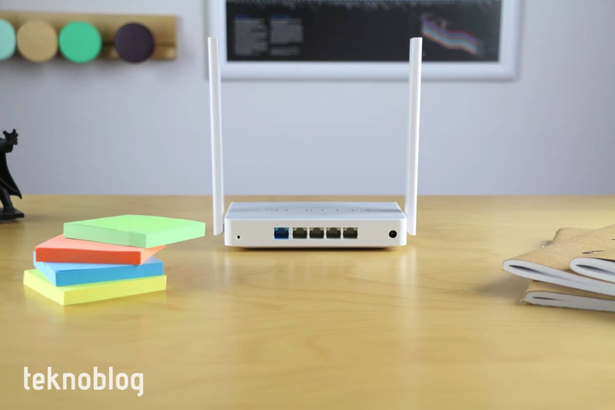 Cihazın arkasında toplam beş adet 100 megabit saniyelik Ethernet portu mevcut. Bunlardan mavi renkli olanı internet bağlantısının girişi için kullanılırken, router cihazına kabloyla bağlamak istediğiniz bilgisayar, uydu alıcı ve benzeri aygıtlar için diğer dört Ethernet portunu kullanabilirsiniz. Cihazın sol tarafında fonksiyon tuşu görüyoruz. Bu tuşa da dilediğiniz işlevleri, web arayüzü üzerinden atamanız mümkün. Ön tarafta ise güç, internet bağlantısı, Wi-Fi durumlarını görmeyi sağlayan LED lambalar var. Ayrıca WPS tuşu da ön tarafta, kolaylıkla erişilebilir bir noktada bulunuyor.