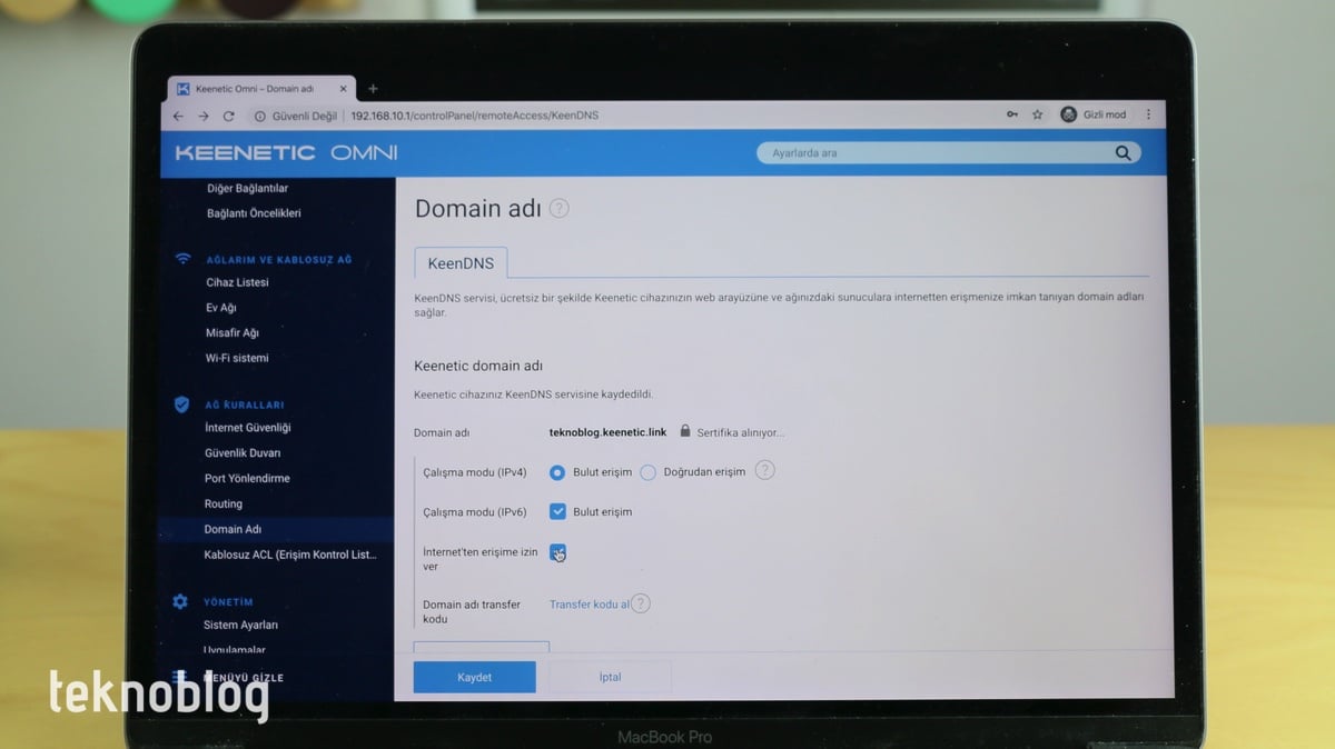 Keenetic Omni’nin bir başka dikkat çeken özelliği de WPA3 desteğine sahip olması. Son zamanlarda çıkan ürünlerde görmeye başladığımız bu güncel kablosuz ağ güvenlik protokolünü Wi-Fi ayarları sırasında seçebilirsiniz. Böylelikle dışarıdan sızmalara karşı daha yüksek seviyede güvenliğe sahip olacaksınız.
