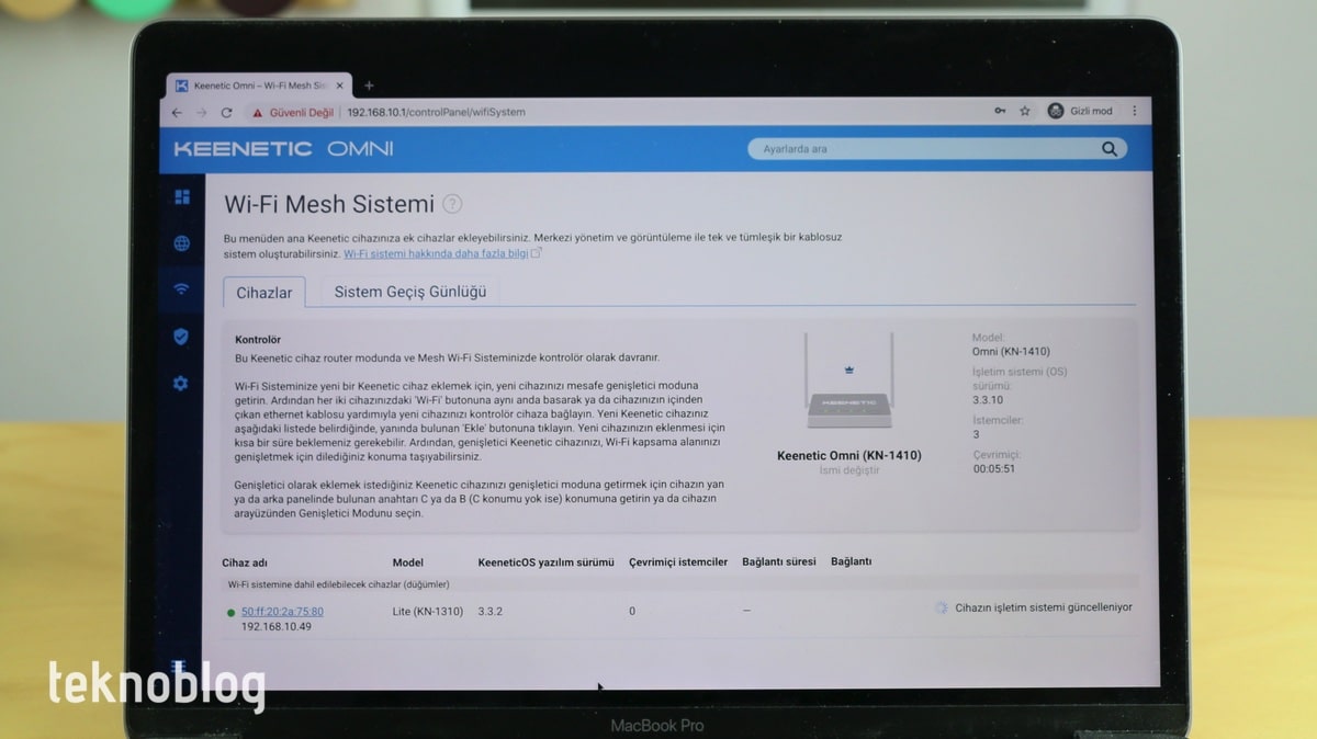 Diğer Keenetic ürünleri gibi Omni’yi de Router modu dışında İstemci, Tekrarlayıcı veya Access Point modlarında kullanabilirsiniz. Bunun dışında büyük bir eve veya iş yerine sahipseniz, Keenetic Omni’nin yanına bir Keenetic cihazı daha ekleyerek kesintisiz bir Wi-Fi ağına sahip olabilirsiniz. Omni’nin kullanıcı arayüzü içine bulunan Wi-Fi Sistemi bölümünden örgü tipi ağ kurulumunu hızlı şekilde gerçekleştirebilirsiniz. Aynı zamanda mobil uygulama üzerinden de bu işlemi gerçekleştirmek veya sonrasında ağın kontrolünü yapmak mümkün oluyor.