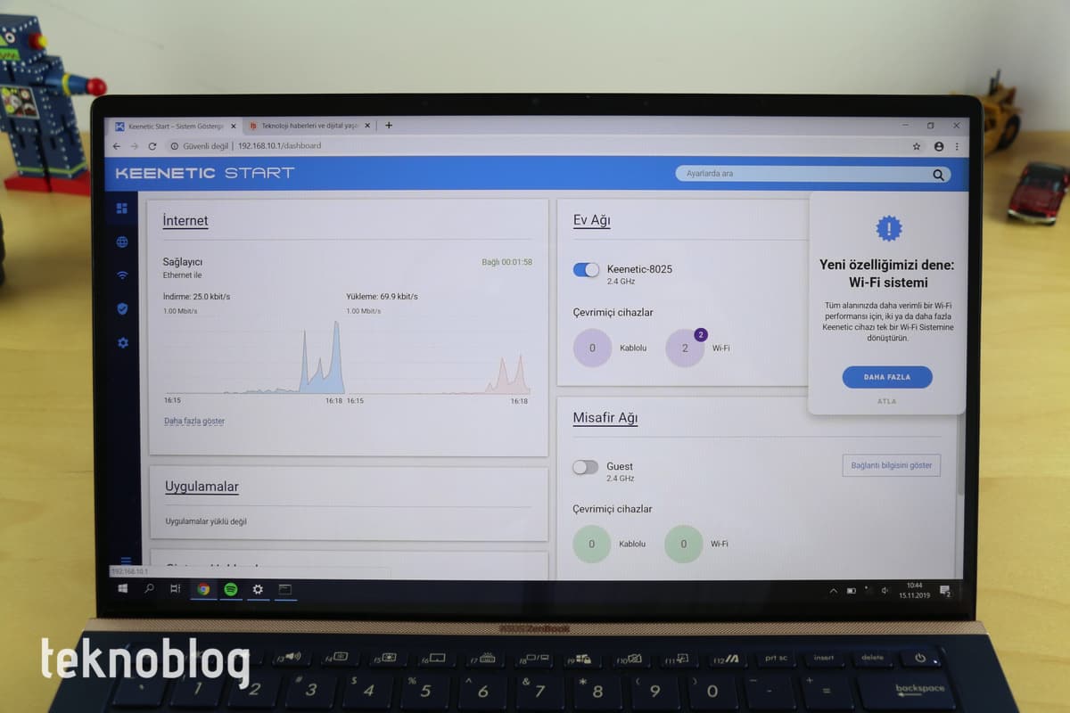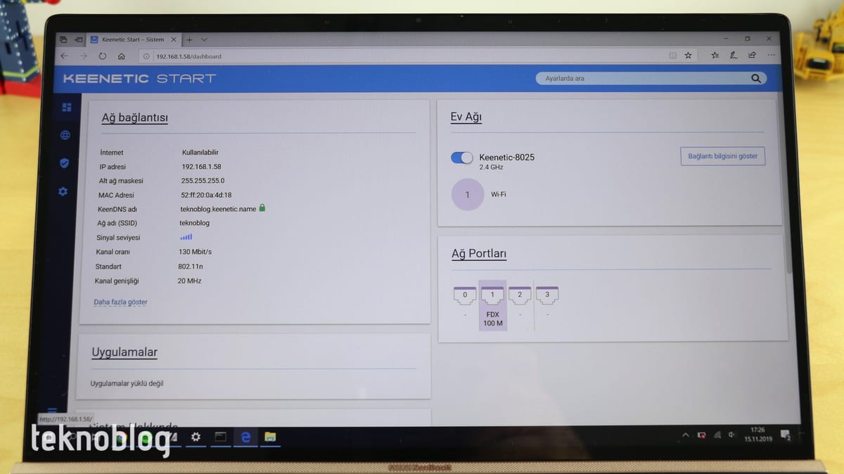 Erişim noktası modunda çalışan Keenetic Start’ın web arayüzü üzerinden cihazın çeşitli ayarlarını yapabilirsiniz. Wi-Fi şebekesinin adını, şifreleme yöntemini ve şifresini değiştirmek bunların arasında yer alıyor. Keenetic Start?ın sunduğu Wi-Fi bağlantısının adını da mevcut W-fi adıyla anı yapın. Şifreyi de aynı olacak şekilde değiştirin. Böylelikle evinizdeki veya iş yerinizdeki cihazların Keenetic Start?a bağlanması için bir şey yapmanıza gerek kalmayacaktır. Öte yandan web arayüzü sayesinde cihazın genel durumunu görebilir, yazılım güncellemelerini yapabilir veya çeşitli ayarları gerçekleştirebilirsiniz.
