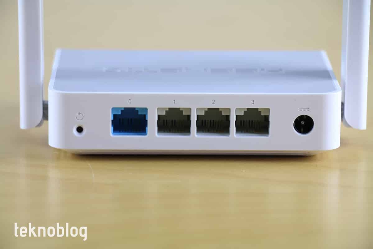 Cihazın ön tarafında güç, ağ bağlantısı ve Wi-Fi bağlantısı için gösterge lambaları var. Aynı zamanda çok işlevli bir düğme bulunuyor. Bu düğmenin görevlerini, Wi-Fi ile bağlantılı şekilde, web arayüzü üzerinden ayarlama imkanınız bulunuyor. Cihazda USB portu bulunmuyor. Arkada da dört adet Ethernet portu, sıfırlama düğmesi ve güç girişi yer alıyor.