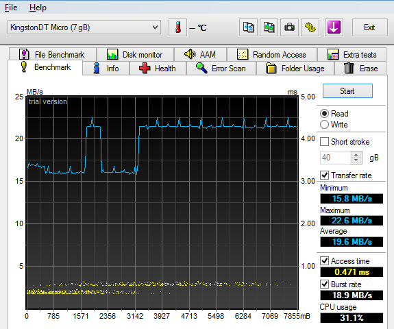 DataTraveler Micro USB 2.0 mükemmel dosya okuma veya yazma hızları sunmuyor. 8 GB kapasiteli üründe depolama için yaklaşık 7.31 GB’lık alan bulunuyor. Rakamların uyuşmaması artık herkesin bildiği üzere bir pazarlama stratejisinden ibaret.