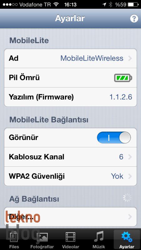 Kingston MobileLite Wireless ile iPhone, Android ve Windows Phone cihazları şarj edilebiliyor. iPad Air ile yaptığımız denemede ise bu tabletin MobileLite Wireless ile şarj edilemediğini gördük. MobileLite Wireless belki cihazınızı tamamen doldurmaz, ancak akıllı telefon veya tabletinizin pilinin iyice azaldığı durumlarda fazlasıyla iş görecektir. MobileLite Wireless uygulamalarında bulunan Ayarlar bölümü altından aygıtın pil durumunu da görüntüleyebilirsiniz.