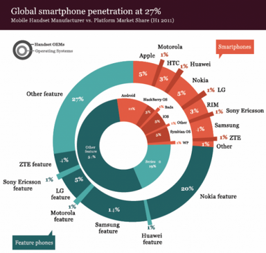 VisionMobile adlı pazar araştırma şirketinin yayınladığı rapora göre dünya genelindeki mobil telefon satışlarının büyük bir kısmını normal cep telefonları oluşturuyor. iPhone ve Android cihazları etrafında dönen onca şamataya rağmen akıllı