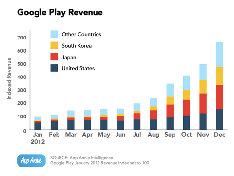 Popüler App Store takipçilerinden App Annie tarafından yayınlanan son rapor iOS geliştiricileri için iyi haberler taşıyor. 2012'nin dördüncü çeyreğinde iOS gelirleri bir önceki yıla göre yüzde 20 artarken, Android gelirlerinin