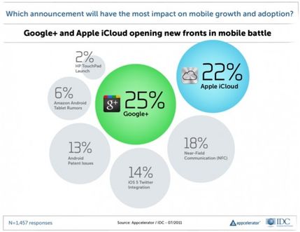 Google+'ın cazibesi yazılımcıların Android'in patent sorunlarından dolayı endişelenmesinin önüne geçmiş gibi görünüyor. Yapılan son araştırmaya göre, hızlı şekilde büyüyen bu sosyal ağ, Apple'ın iCloud servisiyle birlikte mobil büyüme ve benimsenmede
