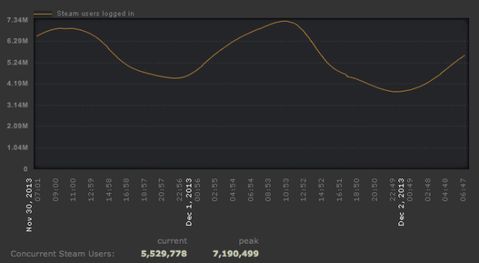 Valve'ın çevrim içi oyun platformu Steam geçtiğimiz pazar günü yoğunluk açısından zirveye ulaştı. 7.2 milyon oyuncu, halihazırda 65 milyon civarında kullanıcısı bulunan platforma aynı anda bağlanarak bir rekorun altına imza