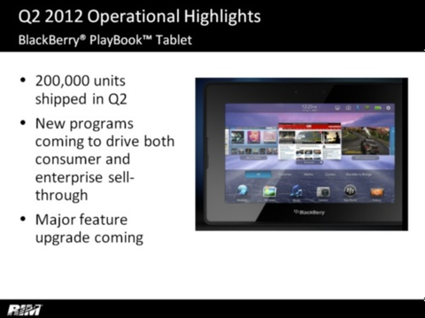 RIM'in beklentileri karşılamayan 2011 ikinci mâli çeyrek yıl finans raporunun detaylarının paylaşıldığı telekonferansta şirketin eşbaşkanlarından Jim Balsillie BlackBerry PlayBook tablete gelecek ay büyük bir güncelleme geleceğini doğruladı. 2.0 versiyon numaralı