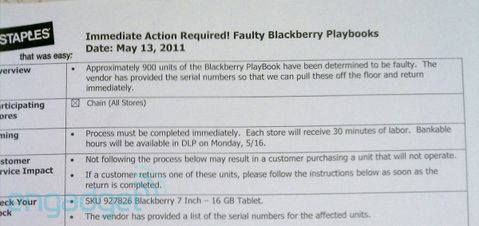 BlackBerry PlayBook geçen ayın ortalarında ABD'de ve Kanada'da piyasaya çıkmıştı. Oldukça sağlam bir cihaz olduğu havasını veren bu tabletin ABD'de faaliyet gösteren Staples adlı mağaza zincirine teslim edilen yaklaşık 1000