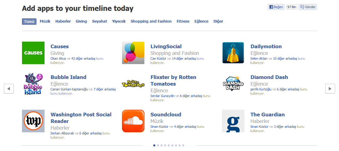 Facebook, geçtiğimiz eylül ayında düzenlenen f8 geliştirici konferansında tanıttığı yenilikleri bir bir hayata geçiriyor. Tüm Facebook kullanıcılarının Zaman Tüneline girmesinin ardından zaman tünellerini zenginleştirmesi amaçlanan uygulamaların ilk kısmı da faaliyete