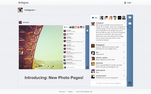 Instagram, web'deki varlığını uygulamalarda sunduğu bazı özellikleri tarayıcı versiyonuna da taşıyarak arttırdı. Bundan böyle kullanıcıları Instagram'a web üstünden de giriş yapabilecek; belirli seçenekleri düzenleyip, fotoğrafları beğenebilecek ve yorum yapabilecek. Bu