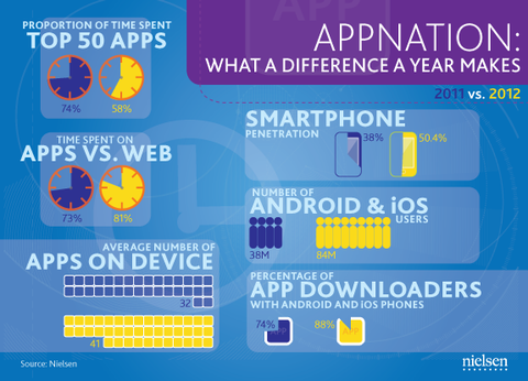Mobil pazarlamanın reklamverenler için daha önemli hale gelmesi nedeniyle mobil kullanım istatistikleri de araştırma şirketleri adına önemli bir raporlama alanına dönüştü. Bu şirketlerden biri olan Nielsen son raporu ile kullanıcıların