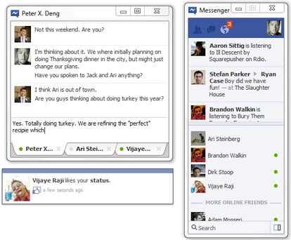 Facebook, Windows 7'ye özel yeni bir Facebook Messenger masaüstü eklentisini kısıtlı sayıda bir kullanıcı grubuna denetmeye başladı. Bu yeni masaüstü işlemci Facebook Sohbet, Facebook Ticker beslemesi ve durum güncelleme bildirimlerine
