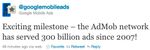 AdMob'un reklamları son günlerde iPhone ve iPad uygulamalarında bayağı bir dikkatimizi çeker olmuştu. Google bunu doğrulayacak şekilde Twitter üzerinden yayınladığı bir mesaj ile mobil reklam ajansı AdMob'un şimdiye kadar gösterdiği