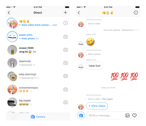 Instagram mesajlaşma özelliklerini basitleştirdi, böylelikle tüm sohbetlere ve etkileşimlere aynı yerden erişim mümkün hâle geldi. Şimdiye kadar kalıcı ve geçici mesajlar Instagram Direct içinde iki farklı noktada bulunuyordu; geçici mesajlar
