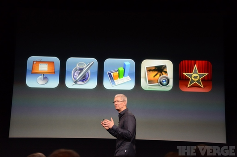 Apple bugünkü iPhone tanıtımında iWork üretkenlik yazılımlarıyla ilgili önemli bir bilgiyi de paylaştı. Yeni bir iOS cihazı satın alanlar Pages, Numbers ve Keynote uygulamalarını, aynı zamanda iMovie ve iPhoto'yu da