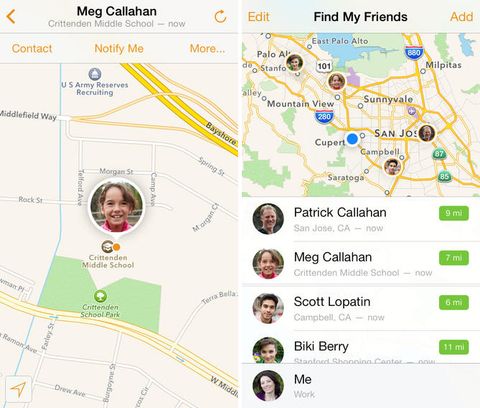 Apple Find My Friends (Arkadaşlarımı Bul) uygulamasına da iOS 7 tarzı tasarım kazandırdı, böylelikle sunduğu iOS uygulamalarının büyük bir bölümünün arayüzünü yeni düzene uygun hâle getirilmiş oldu. Gerçek hayattan izler