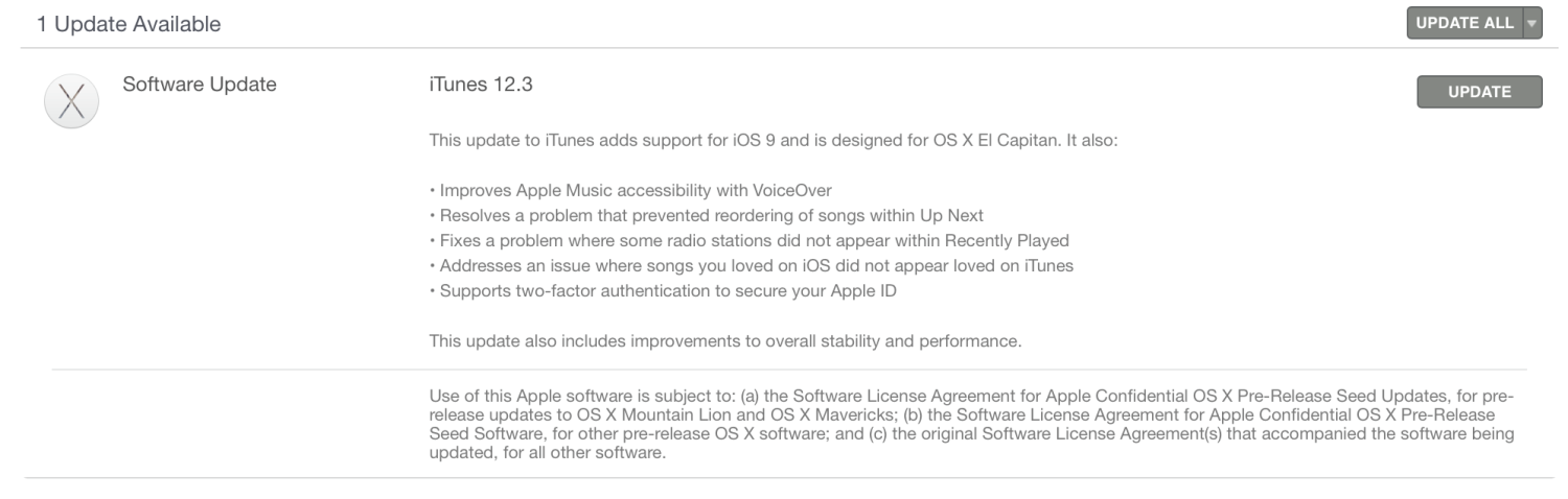 iOS 9'u yayınlayan Apple, iTunes için hazırladığı güncellemenin dağıtımına da başladı. Yazılımın iOS 9 ve OS X El Capitan desteği getiren 12.3 sürümünün sunduğu en önemli yenilik ise iki aşamalı doğrulama sistemini
