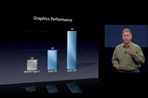 Apple, yeni iPad'de yer verdiği A5X yongasının NVIDIA'nın Tegra 3'üne göre dört kat daha iyi grafik performansı gösterdiğini kaydetmişti. Tabii ki, NVIDIA böyle bir iddianın doğru olduğunu kabul etmeyecek. Grafik