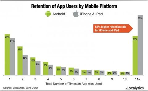 Localytics tarafından gerçekleştirilen bir araştırmanın sonuçları, uygulama geliştiricileri için güzel haberler anlamına geliyor. Araştırmaya göre, uygulamaların akılda kalma oranı bir önceki yıla göre %19 oranında arttı. Localytics'in verilerine göre iPhone