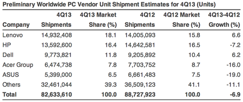 Araştırma şirketi Gartner tarafından yayınlanan son rapora göre, PC satışları 2013 yılında tarihindeki en büyük düşüşü gördü. Bu düşüşün en önemli nedeni olarak ise tüketicilerin elektronik konfor açısından gözlerini akıllı