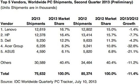 2013'ün ilk çeyreğini pek de iyi kapatmayan PC pazarı için işler yılın ikinci çeyreğinde de değişmiyor. Gartner ve IDC tarafından yayınlanan öngörülere göre, PC sevkiyatları bir önceki yılın ikinci çeyreğine