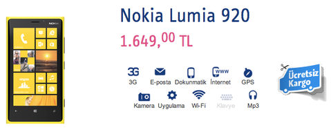 Bu hafta içinde Turkcell tarafından piyasaya sunulacak olan Nokia'nın ilk Windows Phone 8 telefonlarında ve aynı zamanda Türkiye'de piyasaya çıkacak ilk Nokia Windows telefonu olma özelliğine sahip Nokia Lumia 920